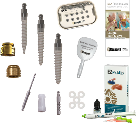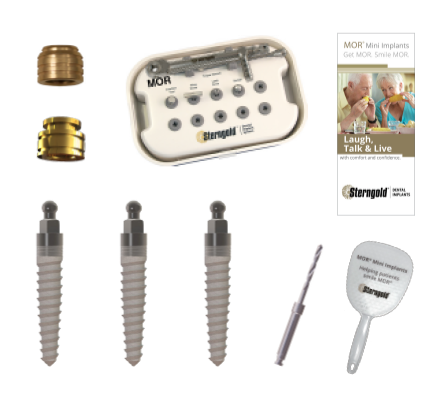 Most of all, MOR® is a true option for patients who want the benefit of an implant-retained, tissue-supported denture without the high costs typically associated with this type of treatment. For optimal use of the system, Sterngold offers an easy-to-use starter kit backed with a surgical protocol identifying steps to ensure clinical case success.