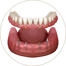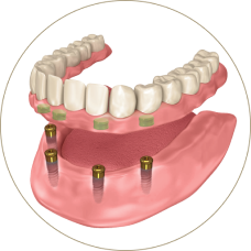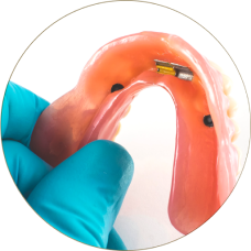 TRU® or PUR® Implants or MOR® Mini implants + Attachments + Conventional Dentures