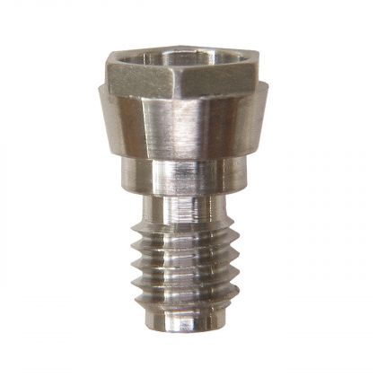 Titanium abutment, nylon male provides a resilient attachment with universal hinge movement.