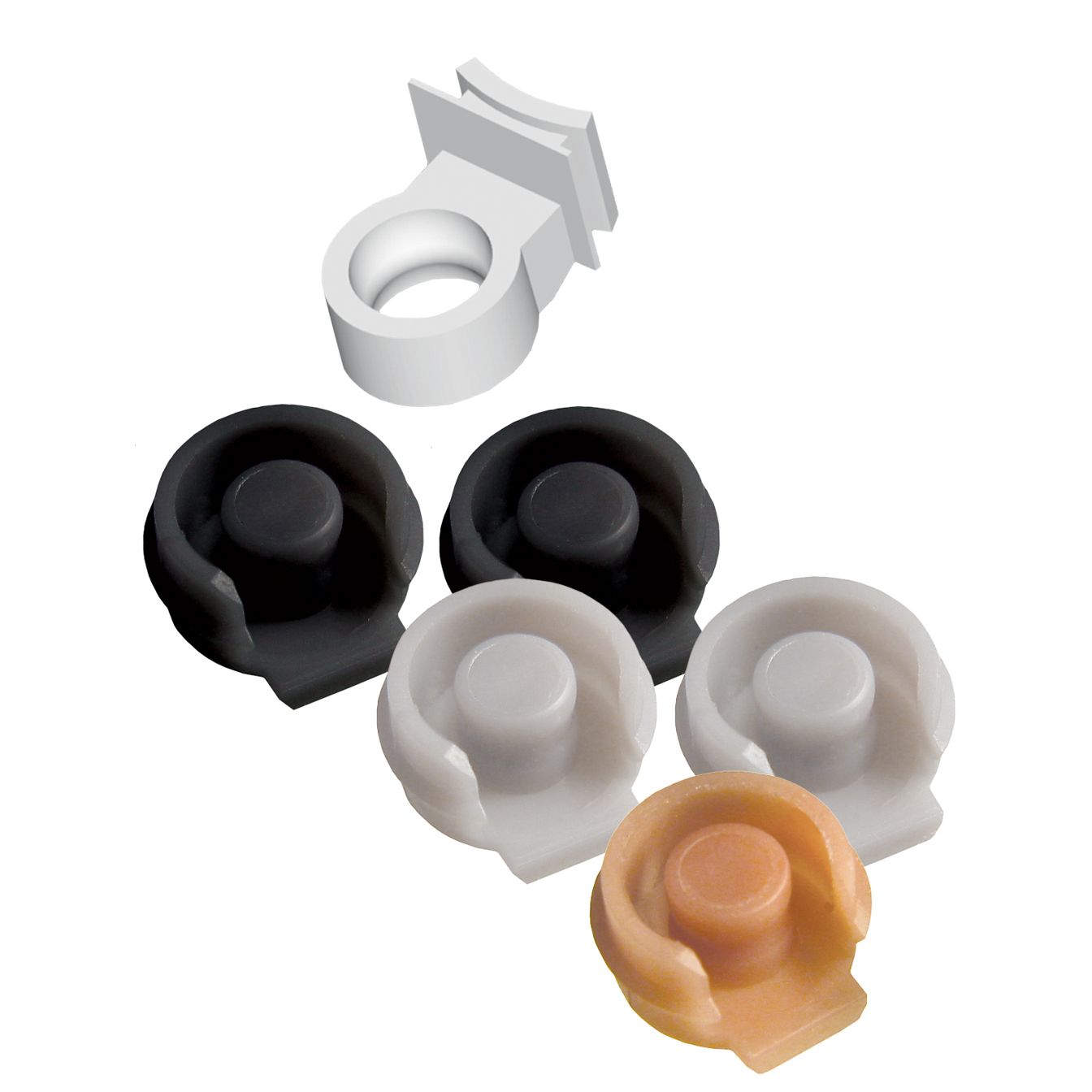 Extracoronal semi-precision dental attachment. Kit contents: 1 female, 2 black males, 2 white males, and 1 orange male. ...